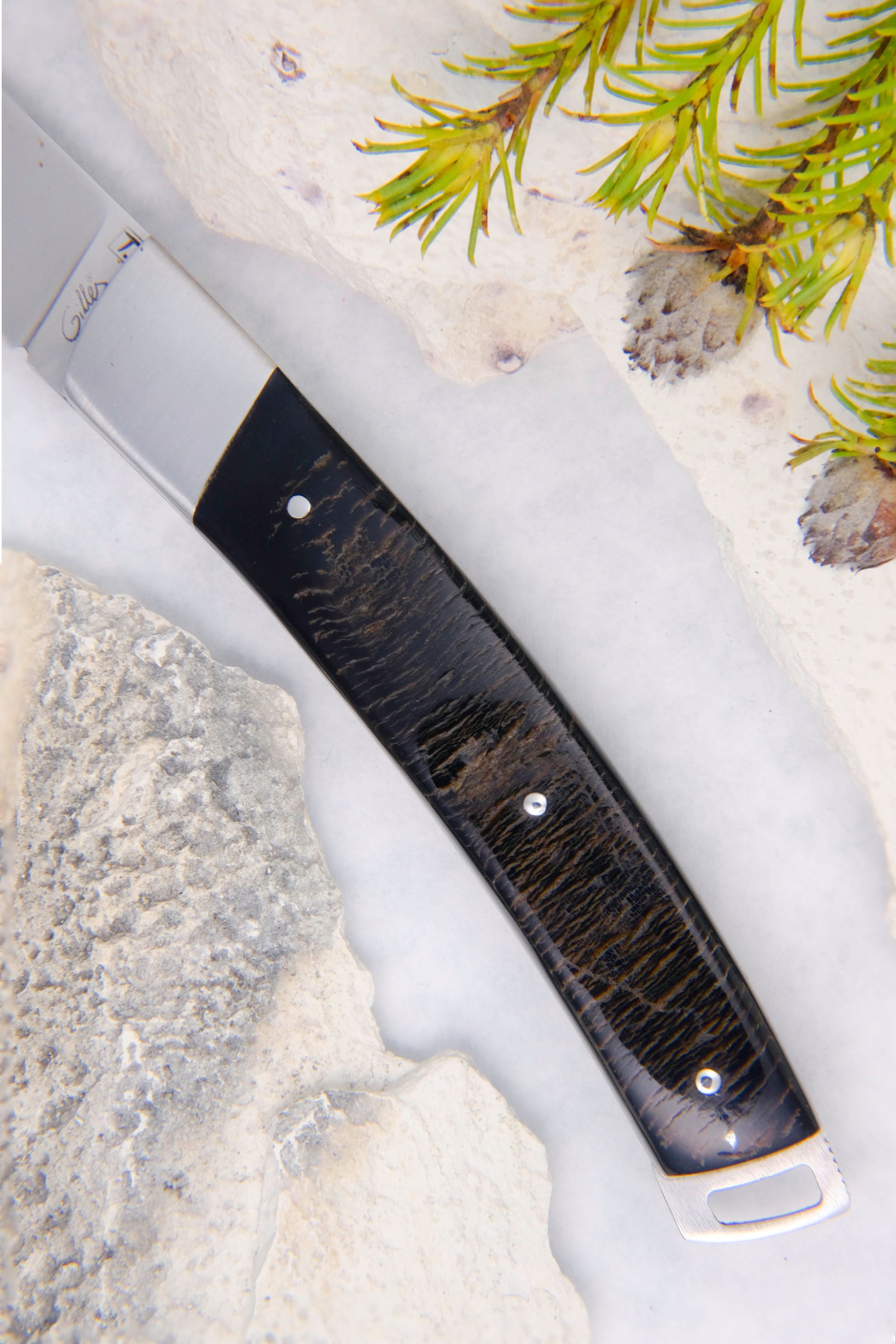 A testement to Fontenille Pataud's precision craftmanship, this system ensures the blade never strikes the back spring when closed, aiding in blade edge retention.