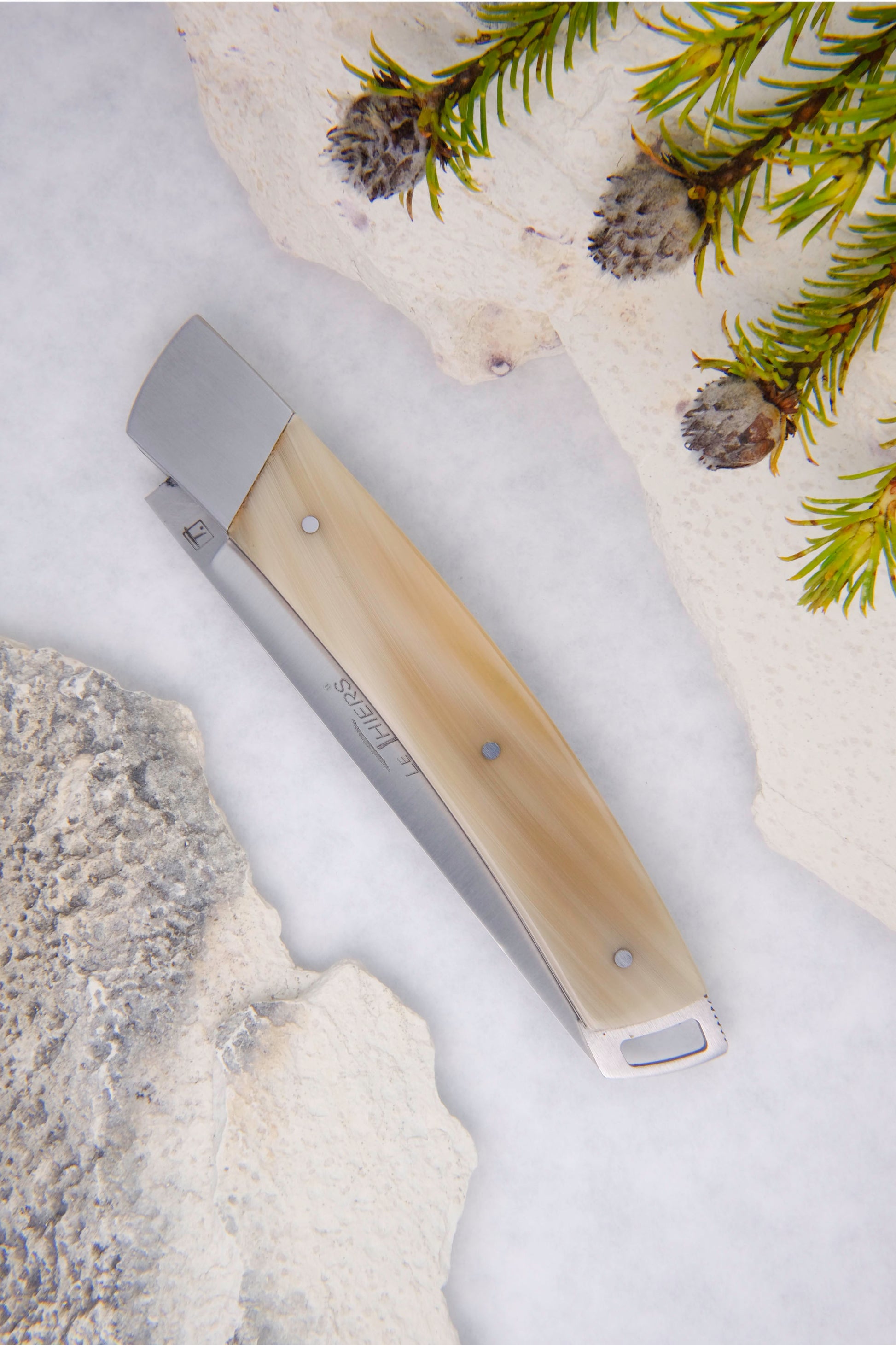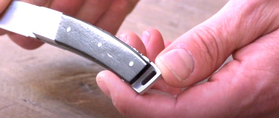 The 'Nature' range from Fontenille Pataud features a unique and secure back lock design located at the rear of the knife. Pressing down firmly will unlock the knife from the open position.