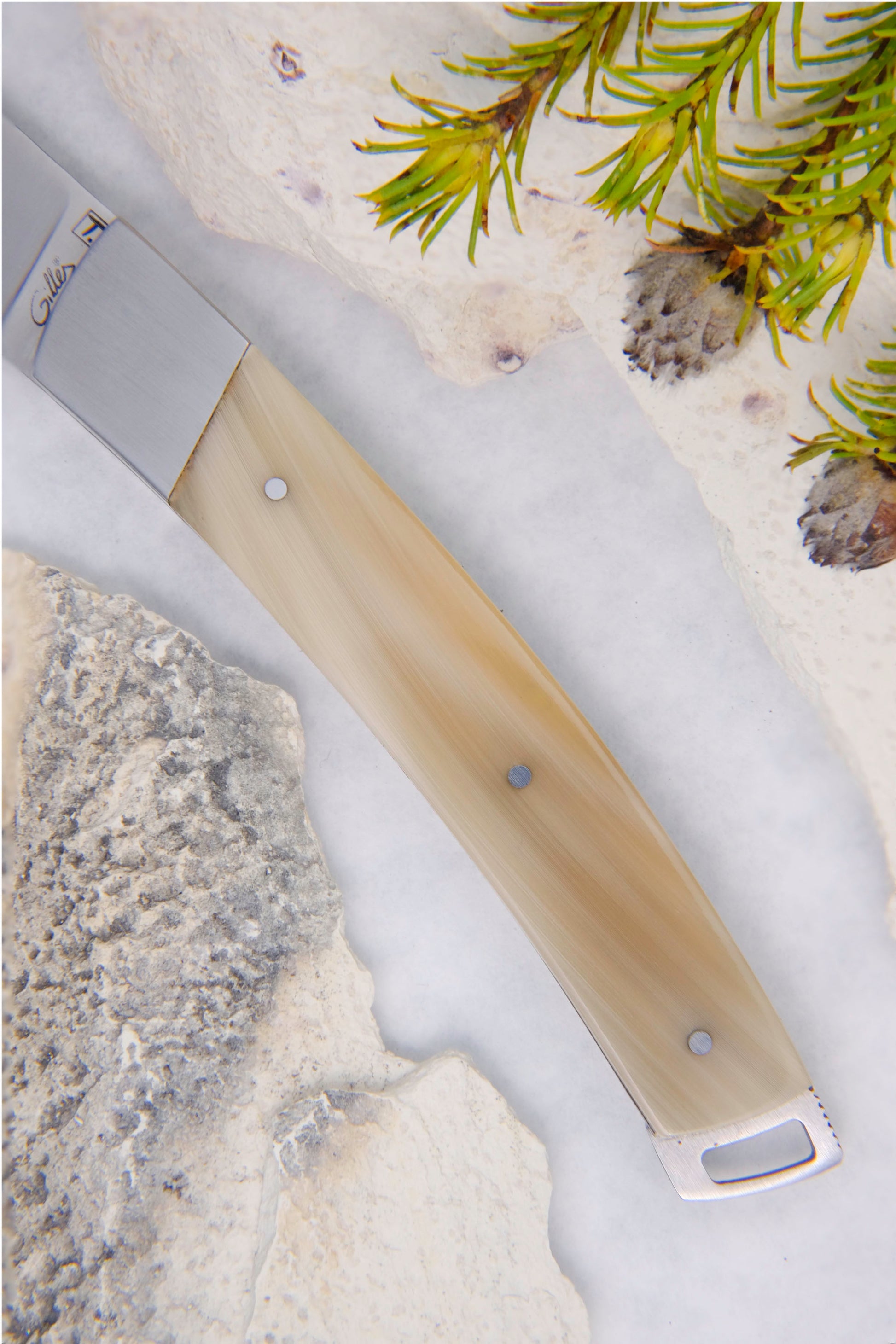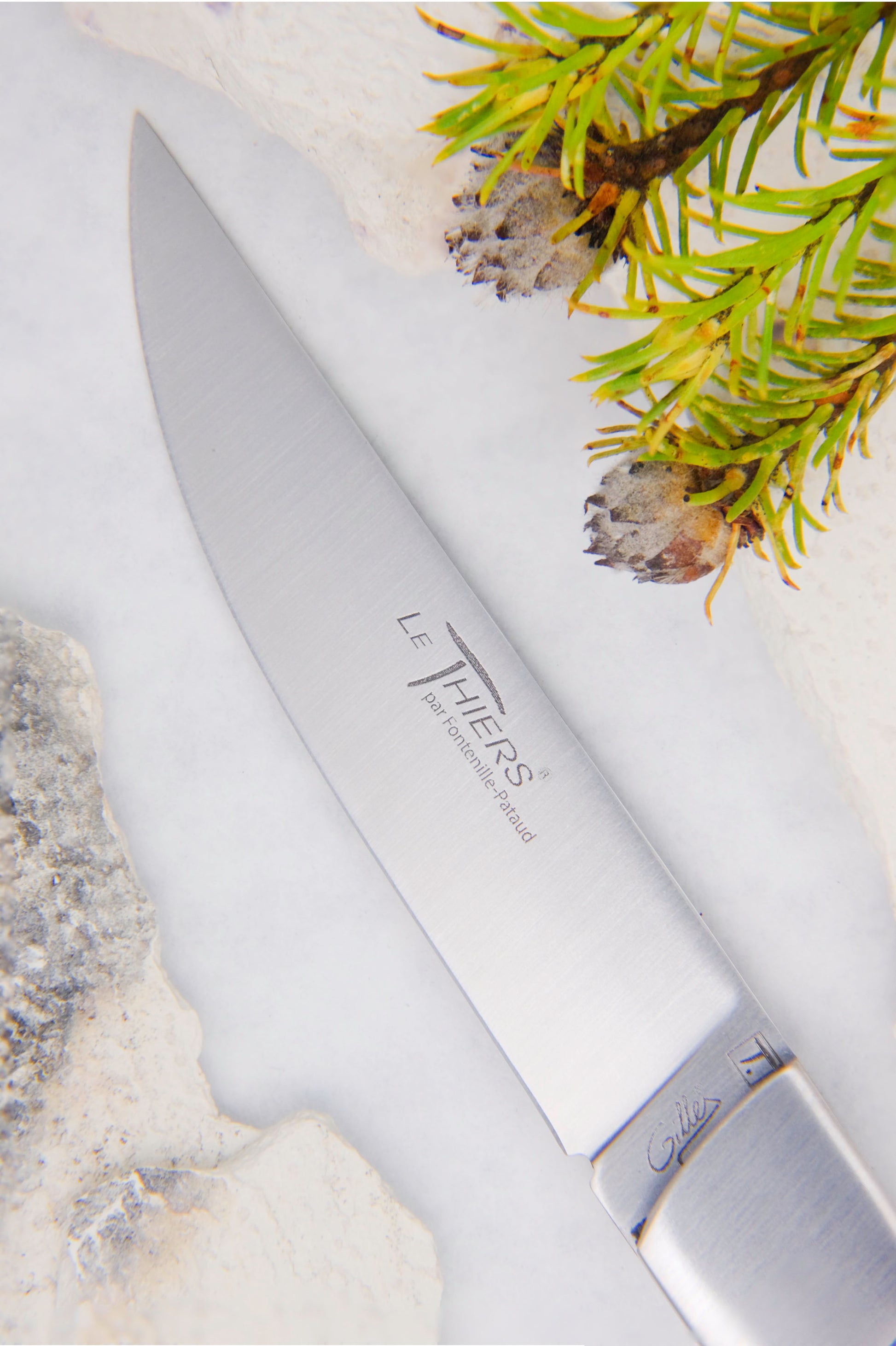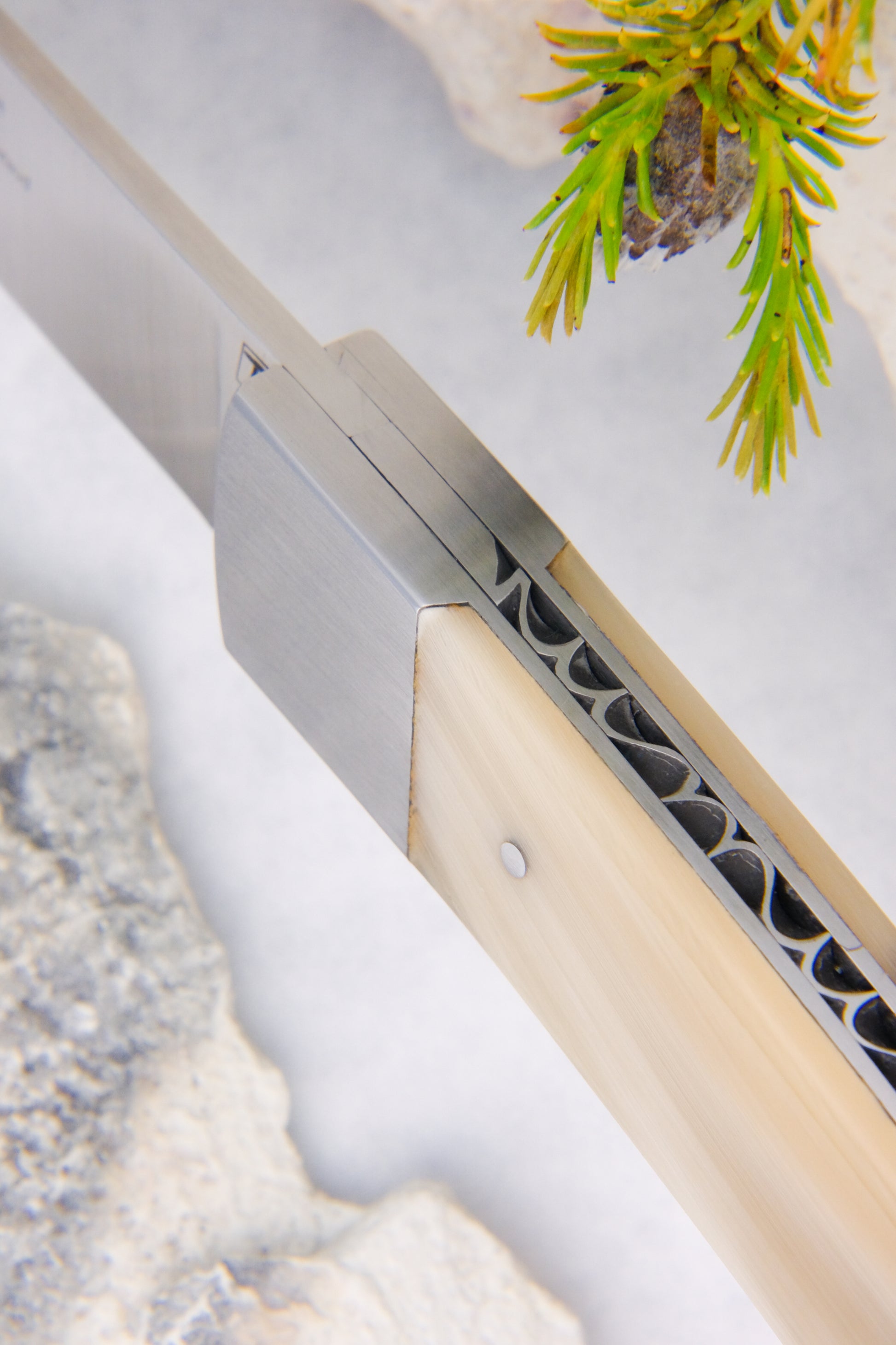 A testement to Fontenille Pataud's precision craftmanship, this system ensures the blade never strikes the back spring when closed, aiding in blade edge retention.
