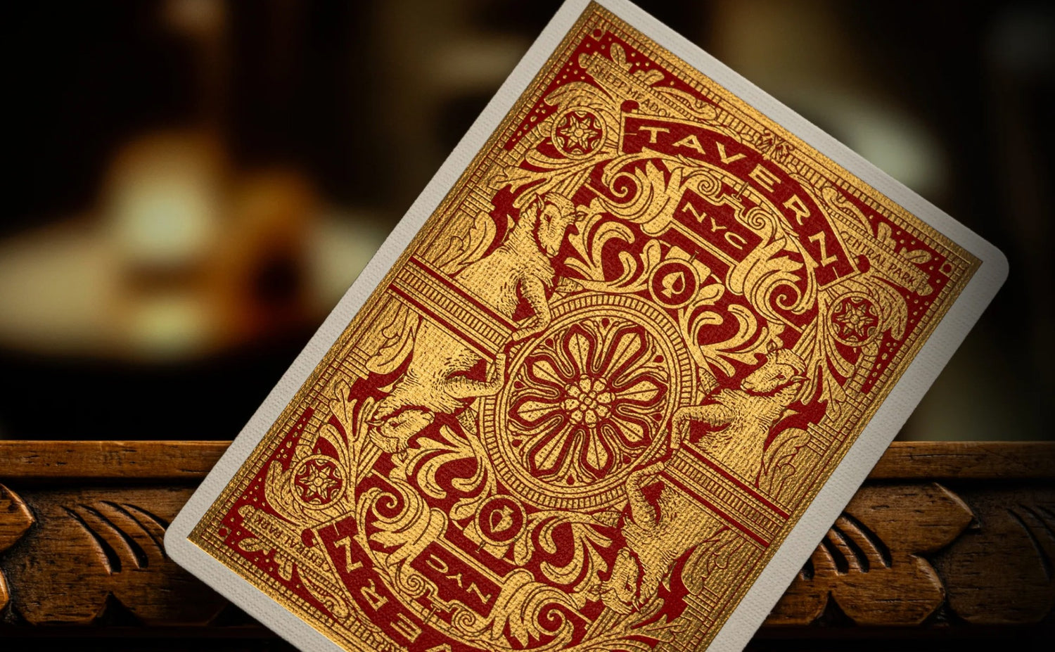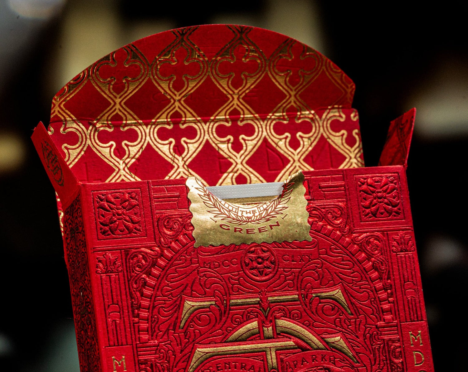 Shielded in red and gold foil on a vibrant Red paper, this new limited edition of Tavern on the Green Playing Cards feature some the most intricate details on a tuck case we’ve ever produced. Inside and out, every detail shines. Exquisite embossing and ultra-rich foil create an aura that only belongs to Tavern.