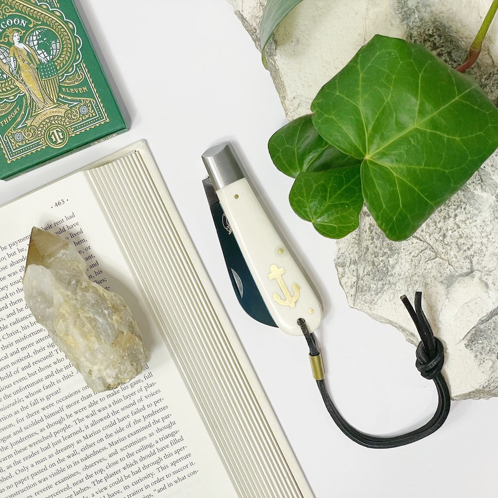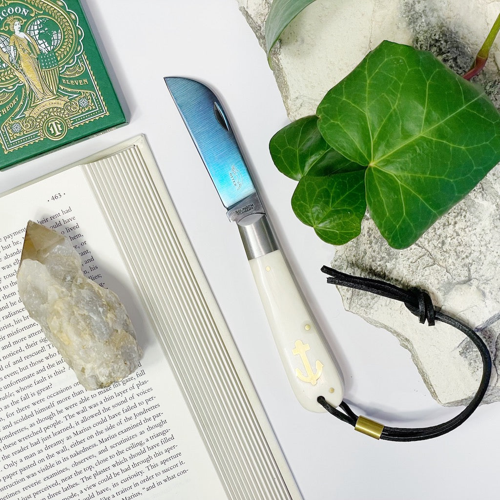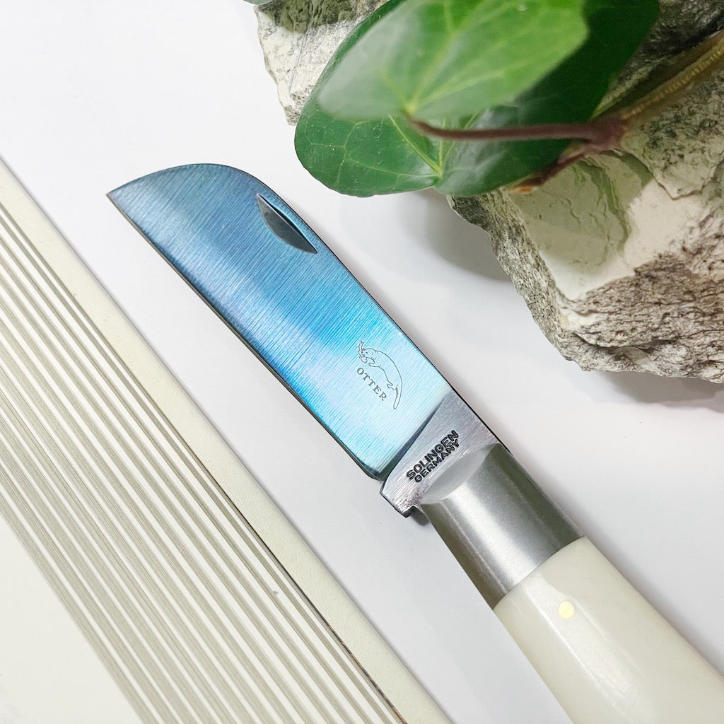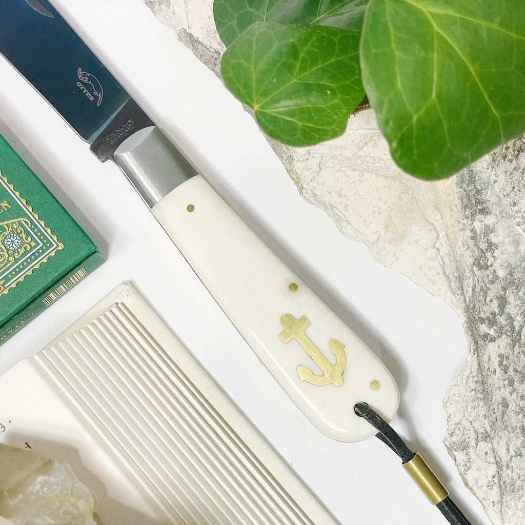 Made in Germany, the Anchor pocket knife is a original design made by Otter-Messer. The traditional shape and appearance makes this knife an instant classic. The handle in inlaid with an anchor and comes in a variety of exotic materials. The sheepsfoot blade with nail-nick is contructed with blued C75 carbon steel, exclusive to this model. Please note, blueing is superficial and will develop a petina over time. The slipjoint design provides ease of use. A wonderful utility knife and a great gift, this will be a cherished addition to your daily essentials.