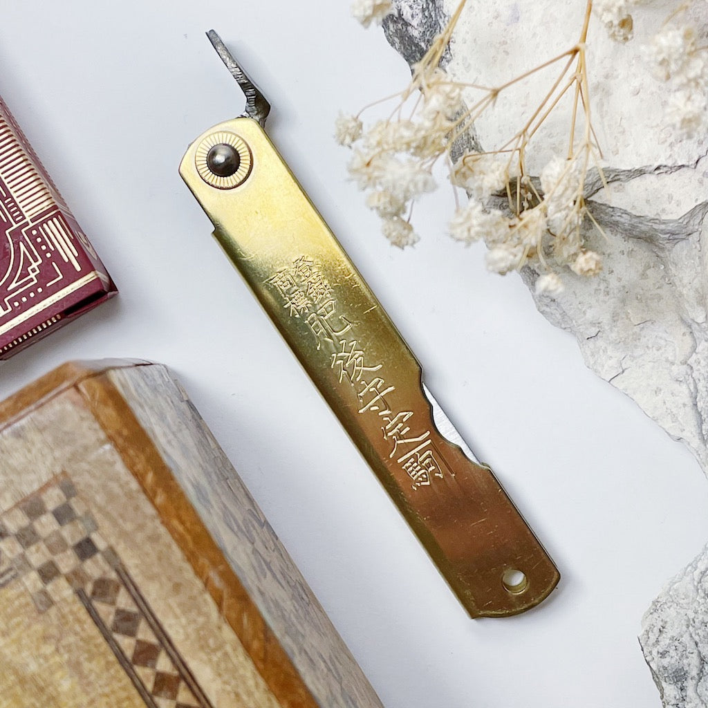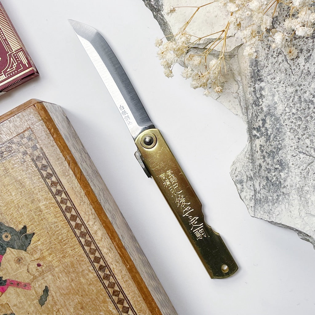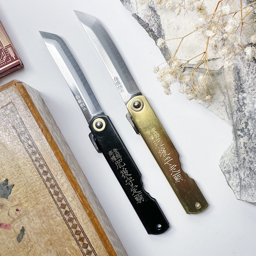 Designed and made in Japan by 6 skilled artisans, the Higonokami is an iconic and historical pocket knife. This traditional blade is a friction folder or 'Penny Knife', meaning, it uses the friction of the swivel and the pressure of the user's thumb on it's iconic lever or 'Chikiri' to keep it open.