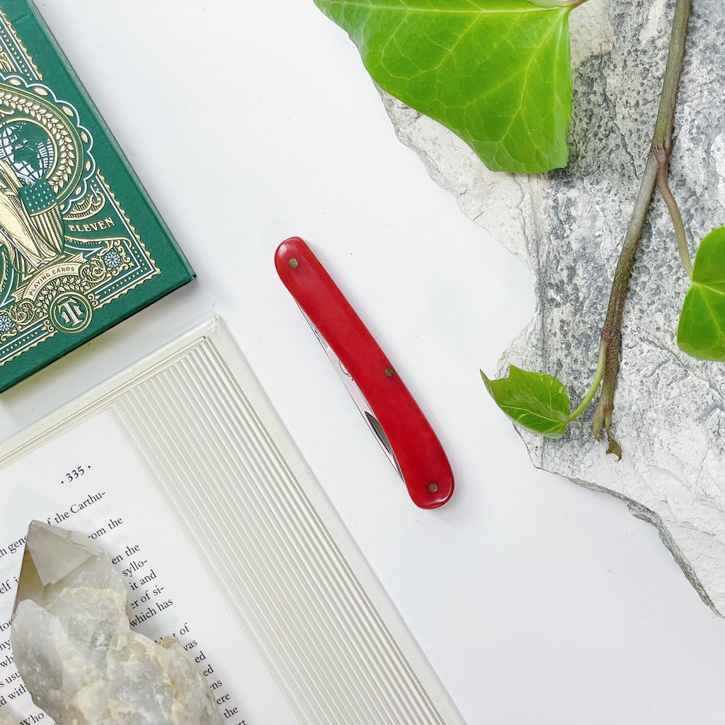 Traditional German Folding Pocket Knife with Red Dyed Camel Bone Handle