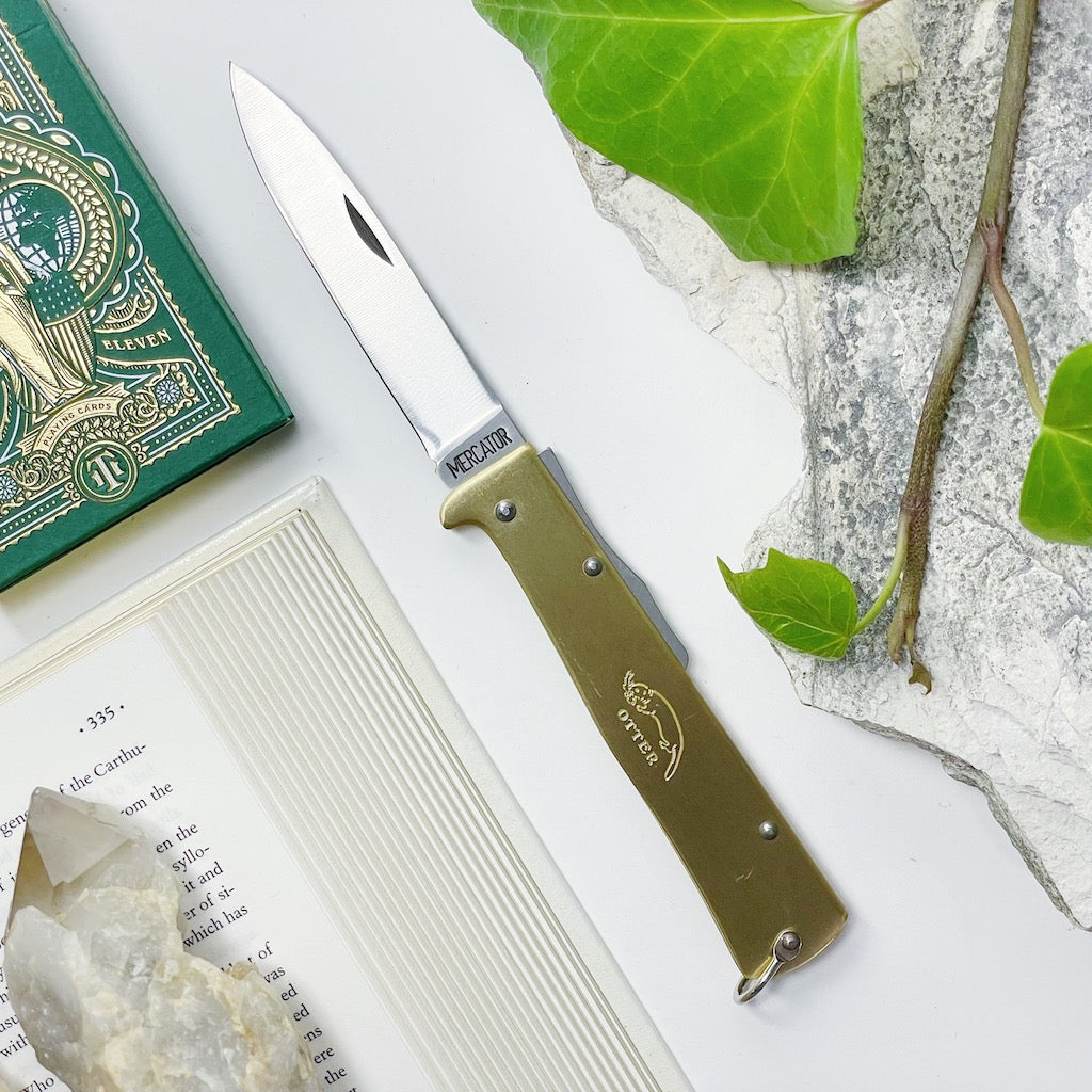 Made in Germany by Otter-Messer, the Mercator pocket knife is an iconic blade with historical roots. The overall appearance is kept traditional with the addition of the Otter-Messer logo impressed on the handle. The spear pointed blade with nail-nick measures 110mm in length and is constructed with reliable C75 carbon steel. The lock back design gives you confidence with every slice. A wonderful utility knife and a great gift, this will be a cherished addition to your daily essentials.