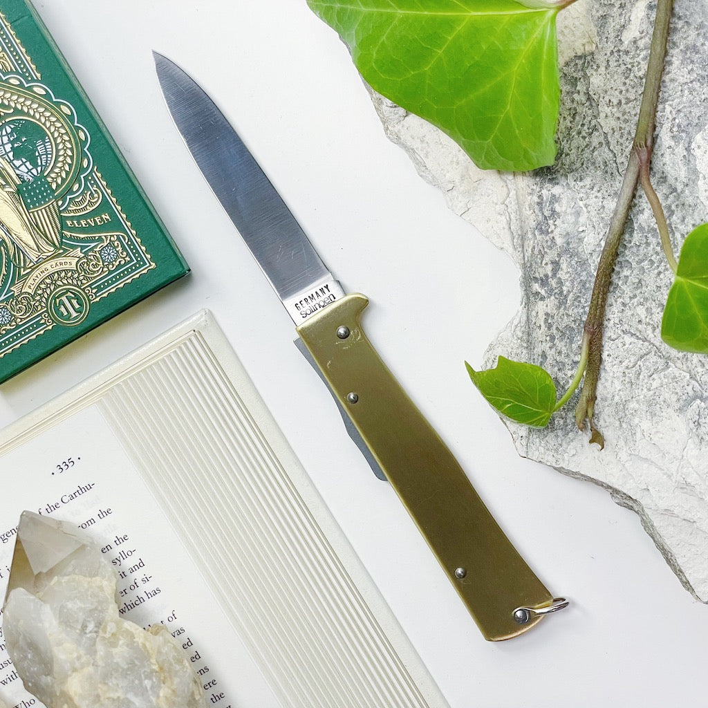 200mm Traditional German Folding Pocket Knife with Brass Handle