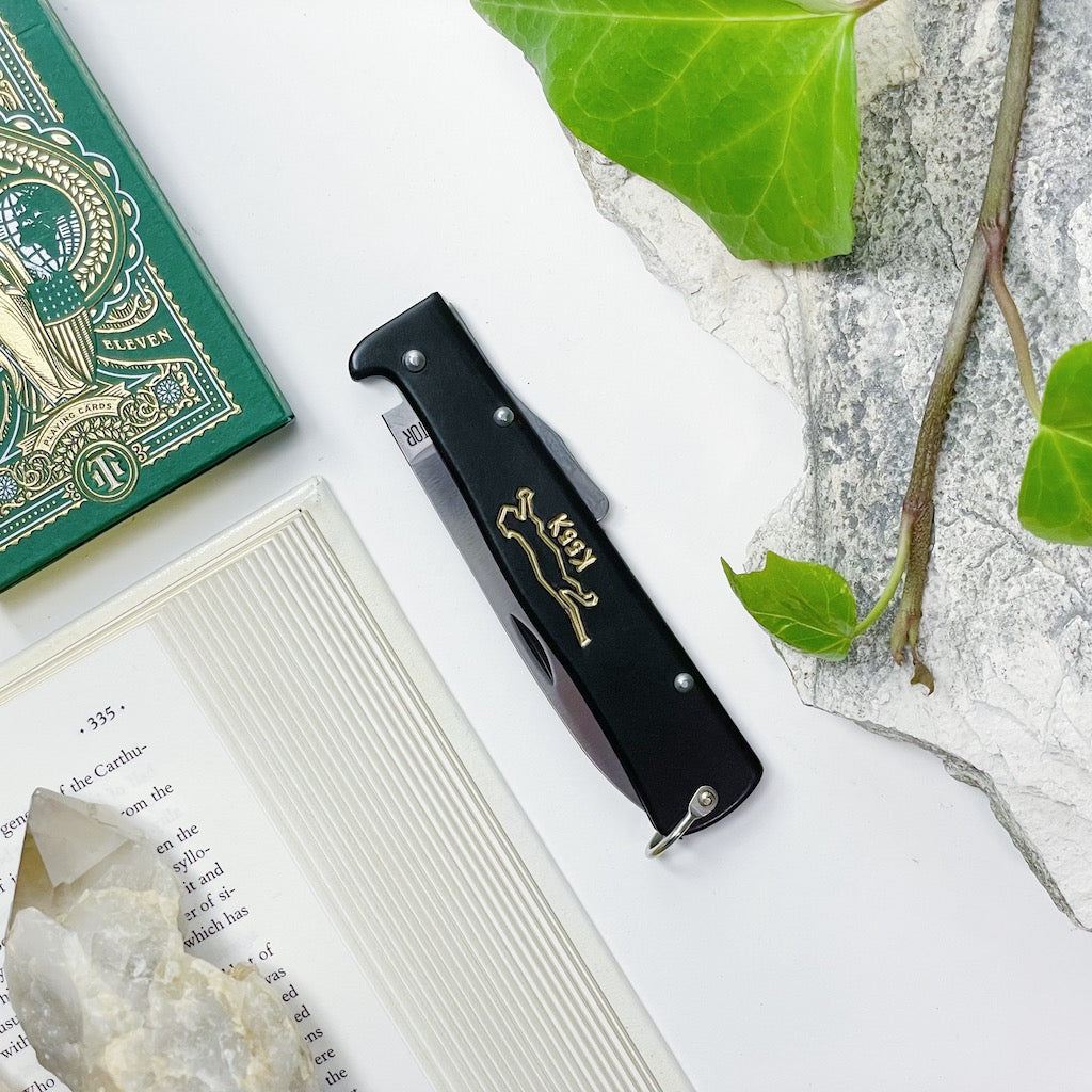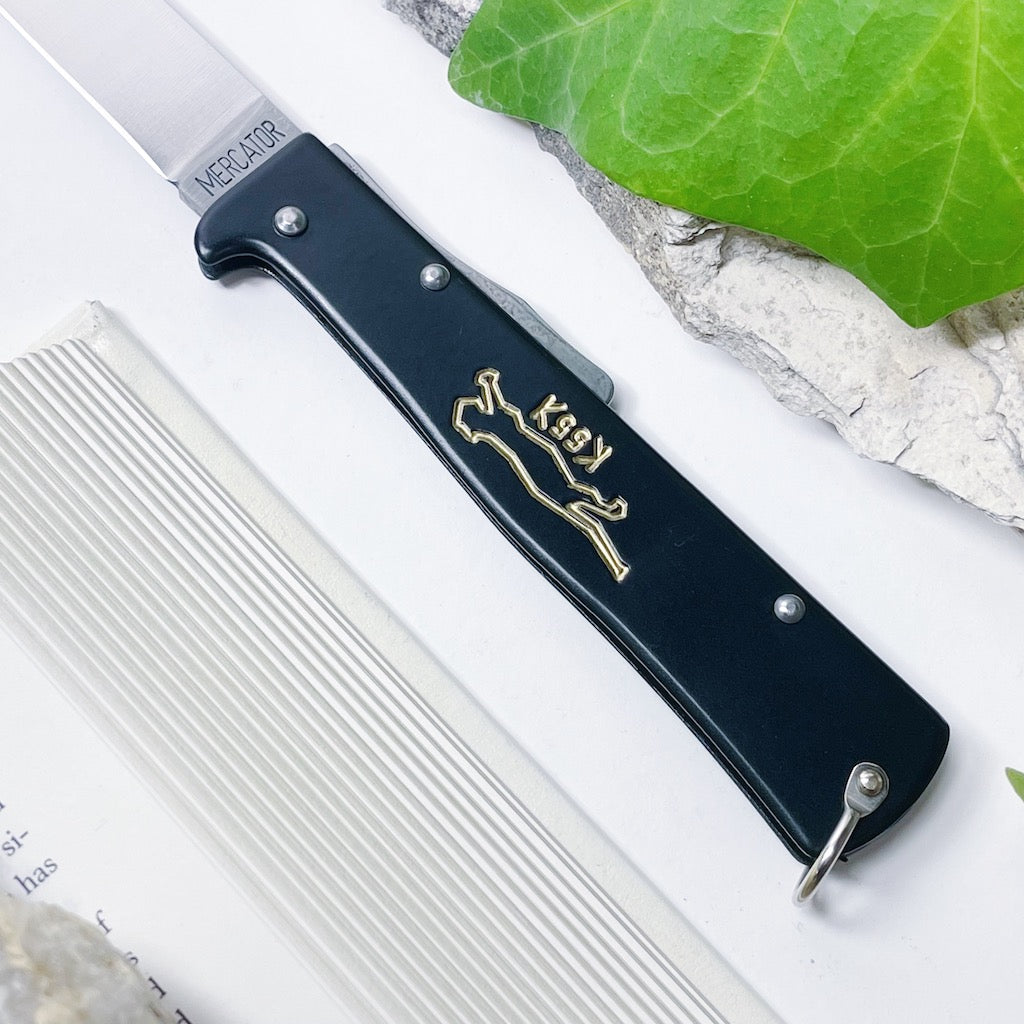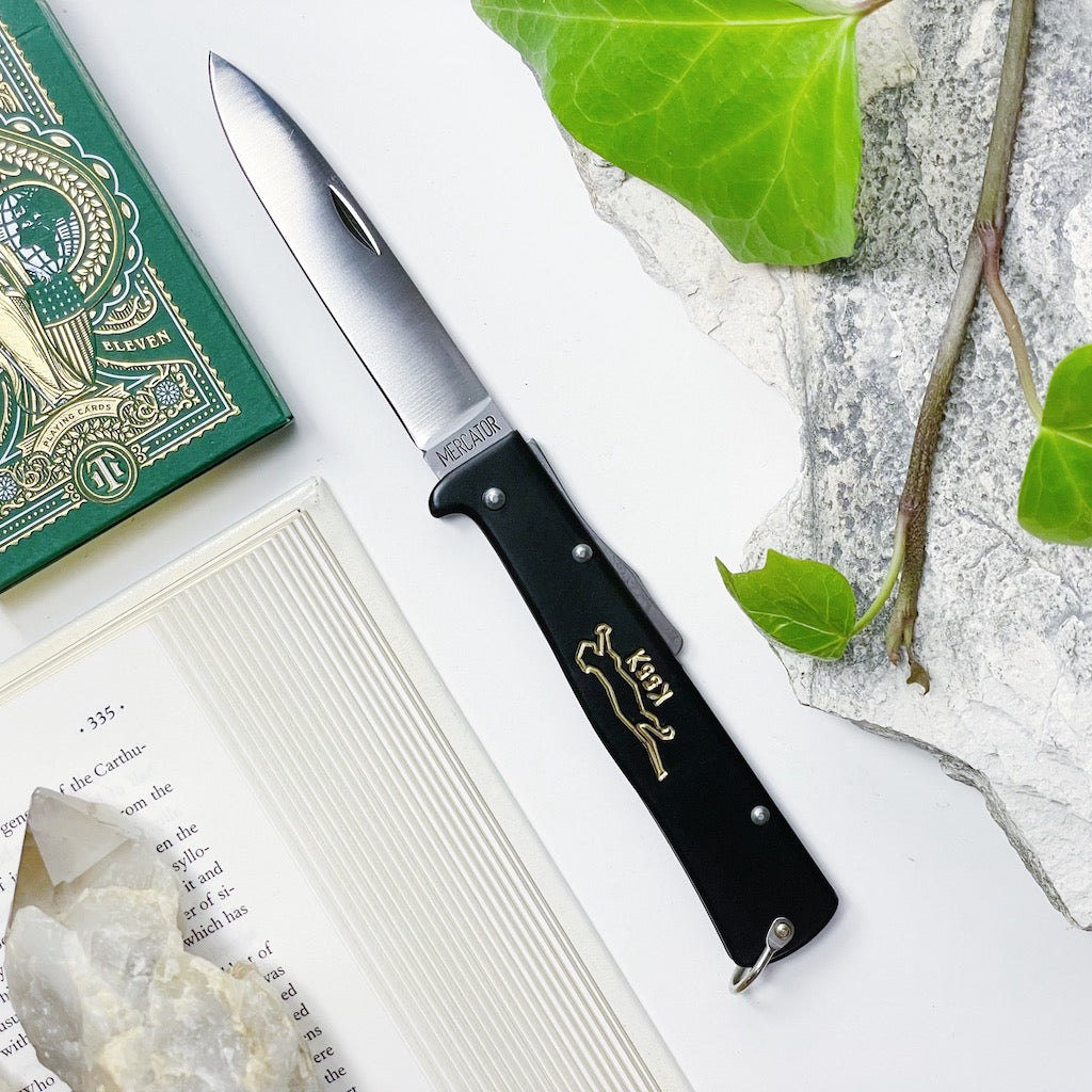Made in Germany by Otter-Messer, the Mercator pocket knife is an iconic blade with historical roots. The original Mercator design is kept traditional with the black coated handle impressed with the K55K logo. The spear pointed blade with nail-nick measures 110mm in length and is constructed with reliable C75 carbon steel. The lock back design gives you confidence with every slice. A wonderful utility knife and a great gift, this will be a cherished addition to your daily essentials.