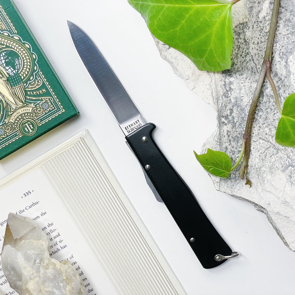 200mm Traditional German Folding Pocket Knife with Black Coated Steel Handle